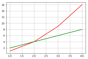 • plt。setp(線條[1],“顏色”,“g”,“線寬”,2.0)