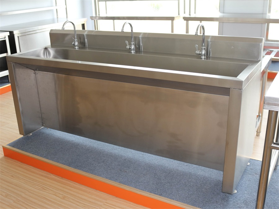 洗手池是手術醫(yī)務人員洗手專用設備,采用人體感應自動給水,因此無需使用人員觸摸,保證清潔,流量為500l/h,采用0.1μm超濾膜,可將至毒病菌全部濾掉,同時采用雙柱超濾組件,具備反沖技術,可長期使用。醫(yī)用洗手池,整體采用不銹鋼SUS304、1.2mm不銹鋼制造,外觀美觀,經(jīng)久耐用。