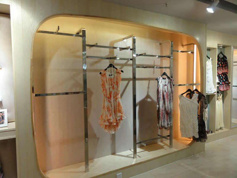 服裝店不銹鋼玫瑰金上墻展示架圖片