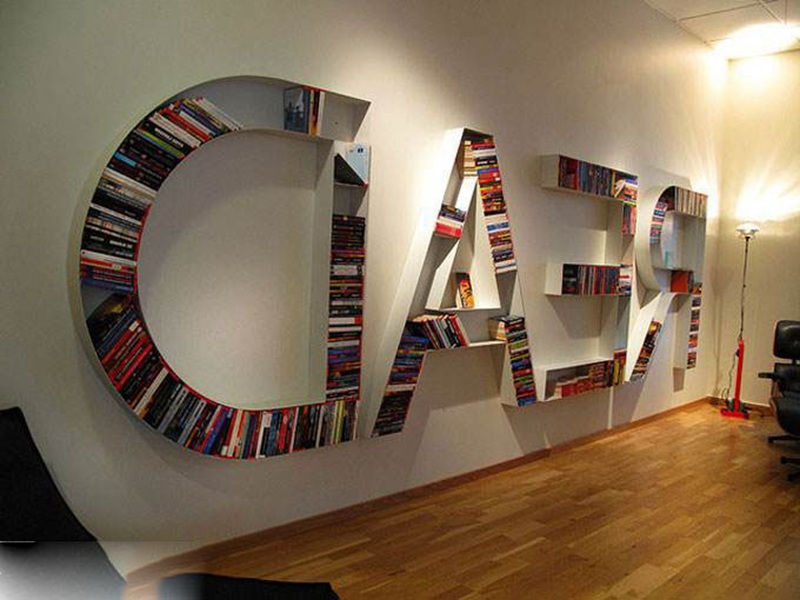固定在墻上的黑色不銹鋼書柜