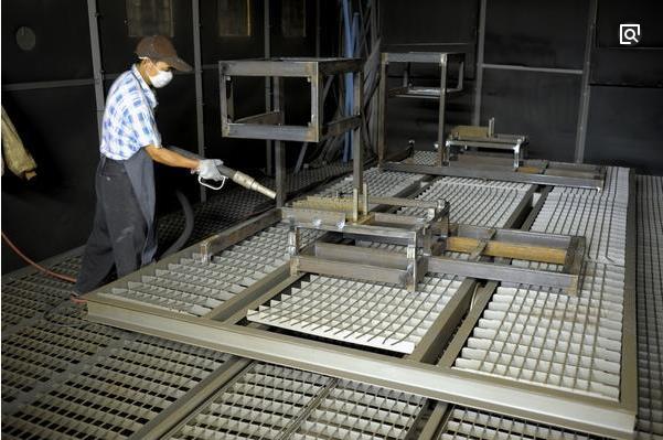 實(shí)踐證明,無(wú)論是在施工現(xiàn)場(chǎng)還是在裝配車間,噴砂處理都是除去氧化皮的最有效技術(shù)。這是成功使用各種高性能油漆系統(tǒng)的必要處理手段。噴砂處理的清潔程度必須規(guī)定一 個(gè)通用標(biāo)準(zhǔn),最好有標(biāo)準(zhǔn)圖片參考,并且在操作過(guò)程中規(guī)定并控制表面粗糙度。噴砂處理完成后必須立即上底漆。