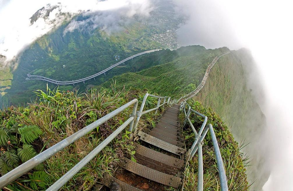 瓦胡島可能是世界最令人嘆為觀止的景色之一,位于夏威夷柯勞山脈上的海庫樓梯 (也被稱為天堂樓梯)。用生銹的鋼欄桿來到那里完全是非法的,以防止從懸崖邊緣跌落。