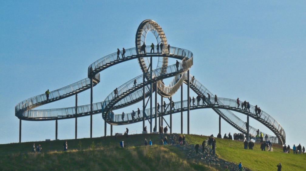 這款繞線機是一個由過山車啟發的藝術裝置。它坐落在一座名為魔術山的山上,你可以走在上面,從山頂上可以看到令人難以置信的景色,橫跨整個杜伊斯堡市。
