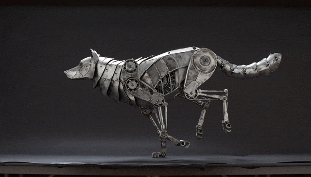 安德魯·蔡斯是一位才華橫溢的攝影師和雕塑家,他從板材到車輪的各種回收鋼零件制作動物雕塑。下面的狼只是其中的一個系列,其中也包括大象, 獵豹和霸王龍。