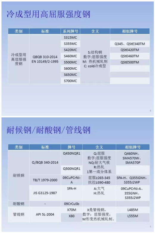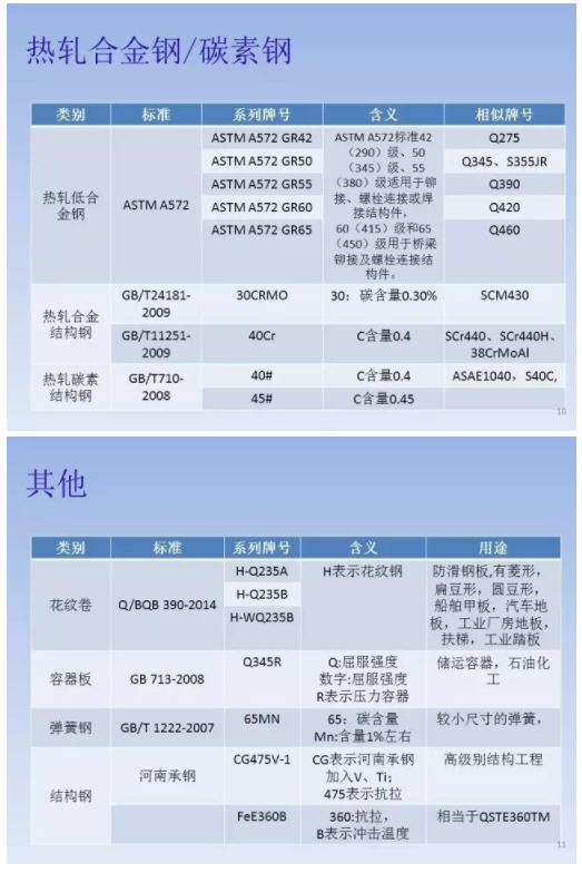 客觀地說,GB/T 221使用更為廣泛。標(biāo)準(zhǔn)里規(guī)定,我國鋼鐵產(chǎn)品牌號采用大寫漢語拼音字母、化學(xué)元素符號和阿拉伯?dāng)?shù)字相結(jié)合的方法來表示。為了便于國際交流和貿(mào)易的需要,作為漢語拼音字母的補充,也采用大寫英文字母或國際慣例表示符號。