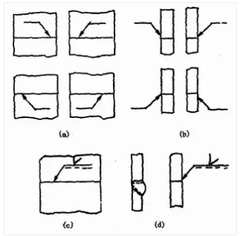 箭頭線相對焊縫的位置一般沒有特殊要求,見圖1—25(a)、(b)。但是在標注單邊V、單邊Y、J形焊縫時,箭頭線應指向帶有坡口一側的工件,見圖1—25(c)、(d)。必要時,允許箭頭線彎折一次,如圖1—26。