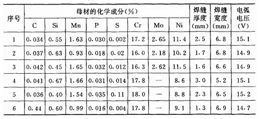(7)母材的化學成分??母材的化學成分不同,在其它工藝因素不變的情況下,焊縫形狀不一樣,這一點在氬弧焊時特別明顯。如三種產地不同的0Cr18Ni19和0Cr18Ni12Mo2不銹鋼,用鎢極氬弧焊方法焊接,采用相同的焊接工藝參數時,所得焊縫形狀的變化,見表1—10。
