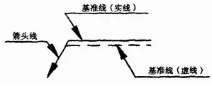 指引線一般由帶有箭頭的指引線(簡稱箭頭線)和兩條基準線(一條為實線,另一條為虛線)兩部分組成。如圖1—22所示。