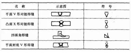 補充符號是為了補充說明焊縫的某些特征而采用的符號,見表1—7。應用示例見表1—8。