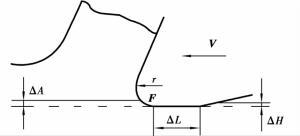 當刀具擠壓切削層金屬時,變形的區域要擴展到切削層以下,使將成為已加工表面的一層金屬也要產生一定的塑性變形;當切削層被切離母體時,由于刀尖圓弧的存在,被切金屬的分離點F不在刃口圓弧的最低點,所以會有厚度為ΔA的一薄層金屬留下來并受到刀口的擠壓,如圖5.1.25所示;由于刀具磨損,后刀面上將出現一段長度為ΔL、后角為零度的棱面與已加工表面摩擦;彈性變形的恢復使已加工表面與后刀面的接觸長度加大,進而增加了已加工表面所受到的擠壓和摩擦。上述原因將使已加工表面的金屬層在一定范圍內產生塑性變形,因而產生加工硬化。金屬在切削過程中的塑性變形越大,加工硬化的程度越嚴重。