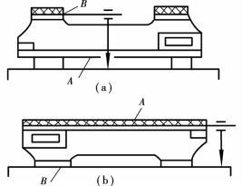 ②選取加工余量最小的表面作為粗基準。這樣不僅可以保證該表面加工時余量均勻,而且可以避免因余量不足而造成廢品。如圖5.3.7所示的車床床身,要求導軌面A切除的余量層薄而均勻,以達到保留鑄鐵表面耐磨性好、硬度高的特點,于是就先選擇導軌面A作為粗基準,加工床身底面B,再以底面B為精基準加工導軌面A。